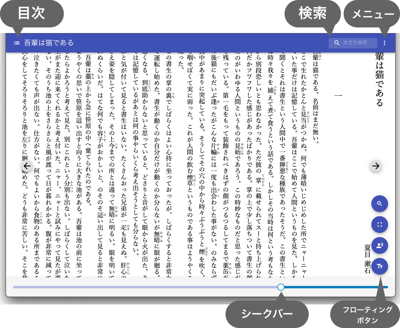 画面左下には書籍を閲覧する上で便利な機能がフローティングボタンとして表示されます。
